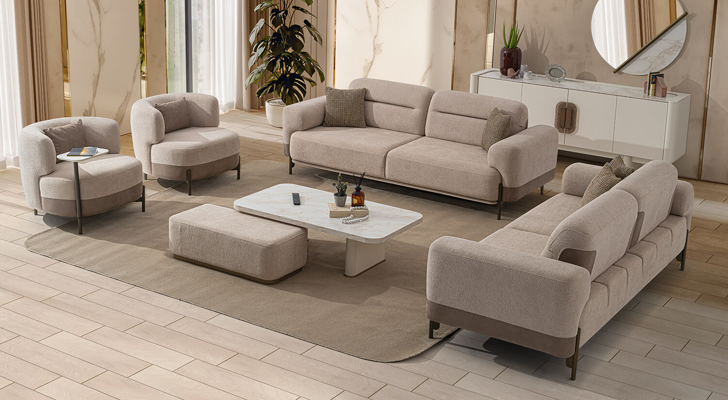 First of all, we would like to point out that the orders placed on the website are only delivered to the borders of Turkey for the time being. Our delivery times may vary depending on the size and fabric of the product you will order, the instantaneously changing stock status of our warehouse and the nearest store to you. However, 21 working days is our maximum delivery time. However, the necessary care for delivery and installation before this period is shown by all our authorized team in this process.