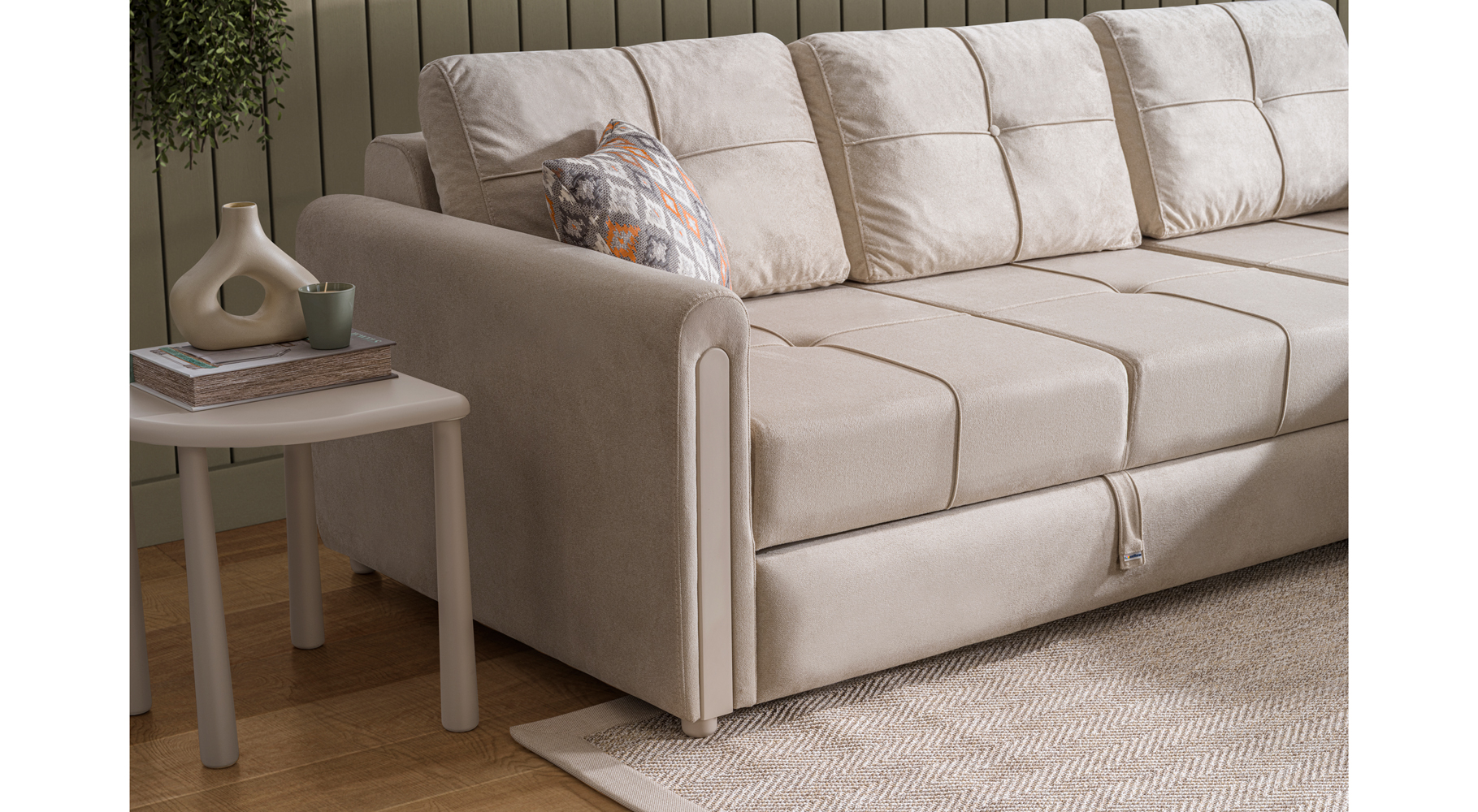 Modüler tasarımı, farklı formlara ve kullanım amaçlarına kolayca uyum sağlayan mekanizması ve minimal tasarımıyla Melonni Köşe, her eve ve her ölçüye tam uyum sağlar. Alanınıza ve mekanınıza göre şekillenir, farklı amaçlarla kullanılabilir. Küçük alanlarda bile ferah bir yaşamın en özel parçası olur.