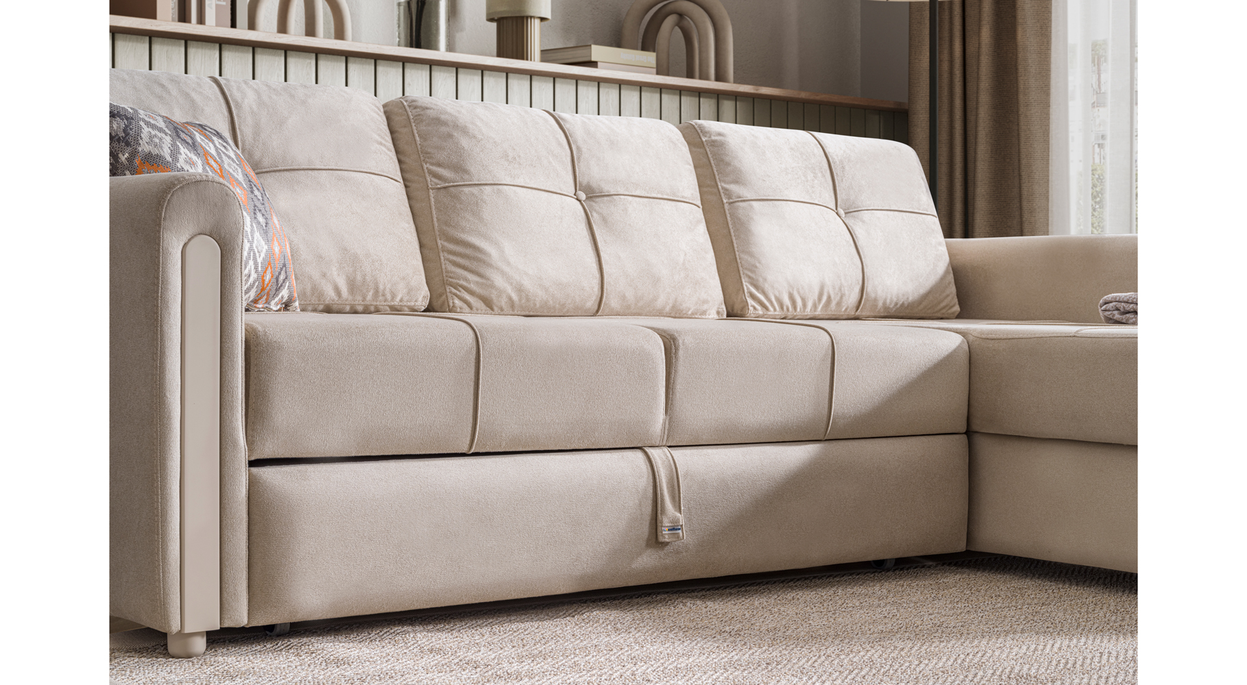 İster sağda, ister solda konumlandırılabilen puf modülü ile Melonni Köşe kendi içinde de dönüştürülebilir bir tasarıma sahiptir. Evinizin ölçüsüne ve yerleşimine tam olarak uyum sağlar, dayanıklı yapısıyla uzun yıllar hayatınızı kolaylaştırır